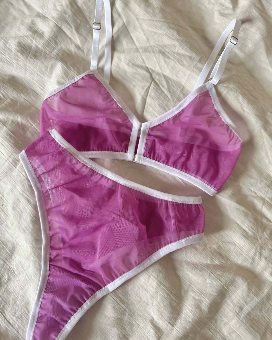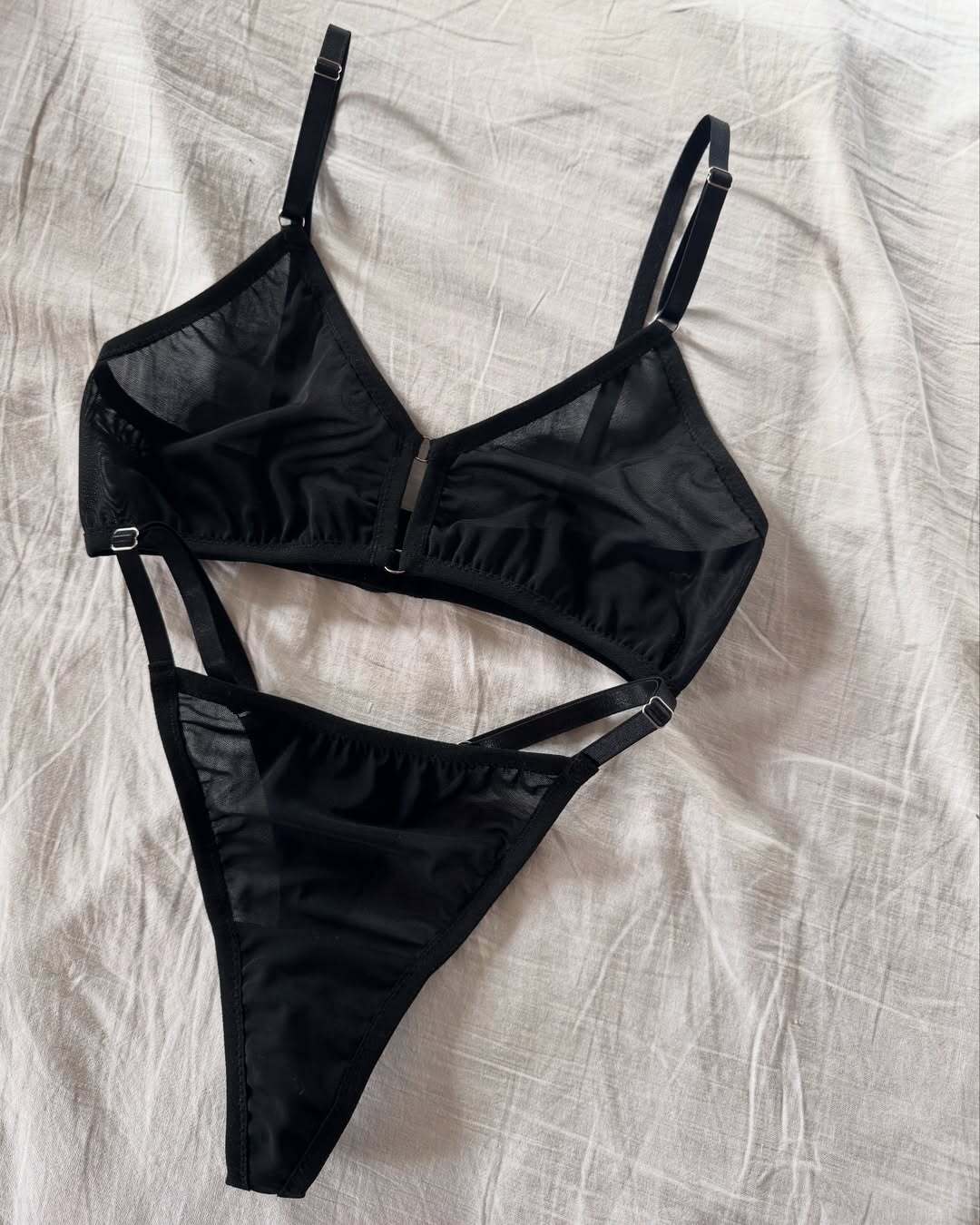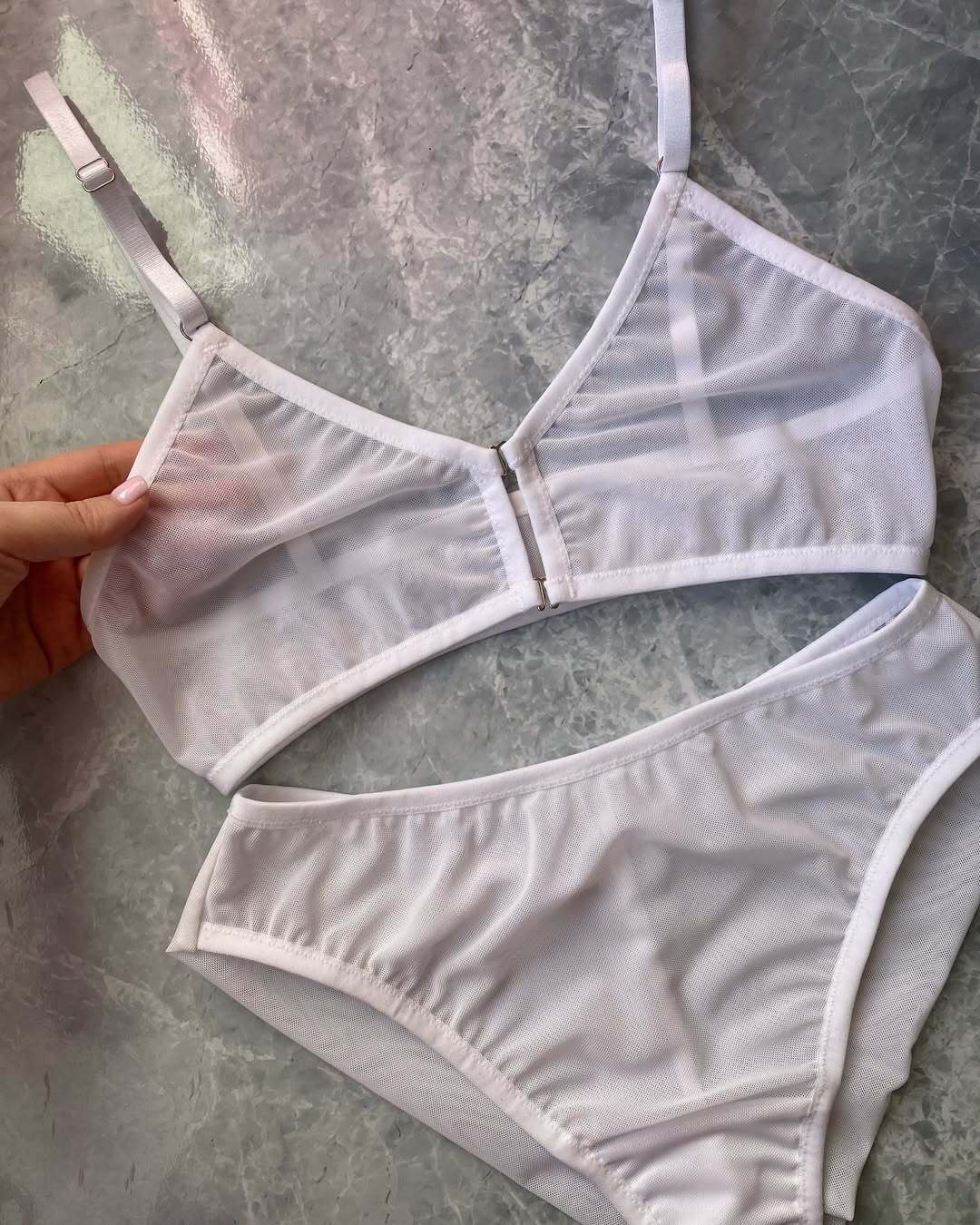 Все комплекты из данного раздела выполнены из трикотажной сетки, которая очень приятна к телу.